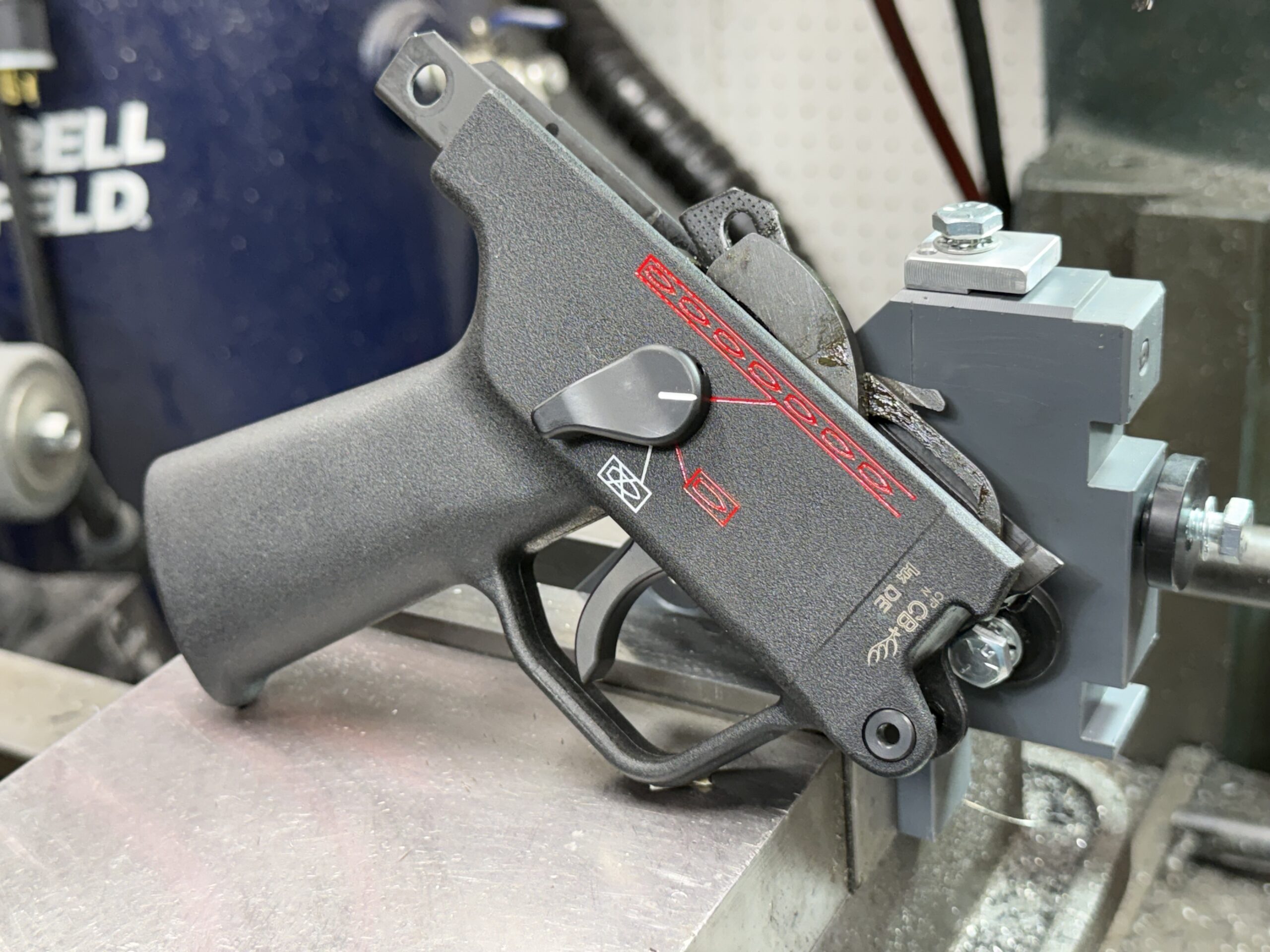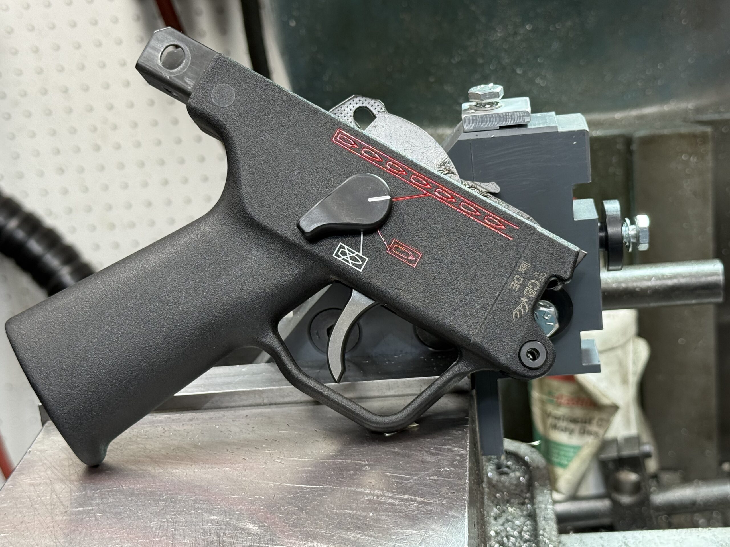 Price includes return shipping, via USPS standard. After service purchase, shipping instructions will be sent. Service time frame is 1-4 week. *Disclaimer: while we strive for the absolute best quality product possible, and have a stellar reputation for our work, this is a replication of the factory product. As such, “perfection” may not always be achievable and there may be very slight variations in our service to the original, factory markings or esthetics. Example, we clipped and pinned a real HK, 3 position ambi lower last week. The factory original, German HK pictograms are different colors on each side of the grip. One side is red, the other side is almost orange. This is a brand new, from HK web shop, REAL German grip frame and each side is different colors.