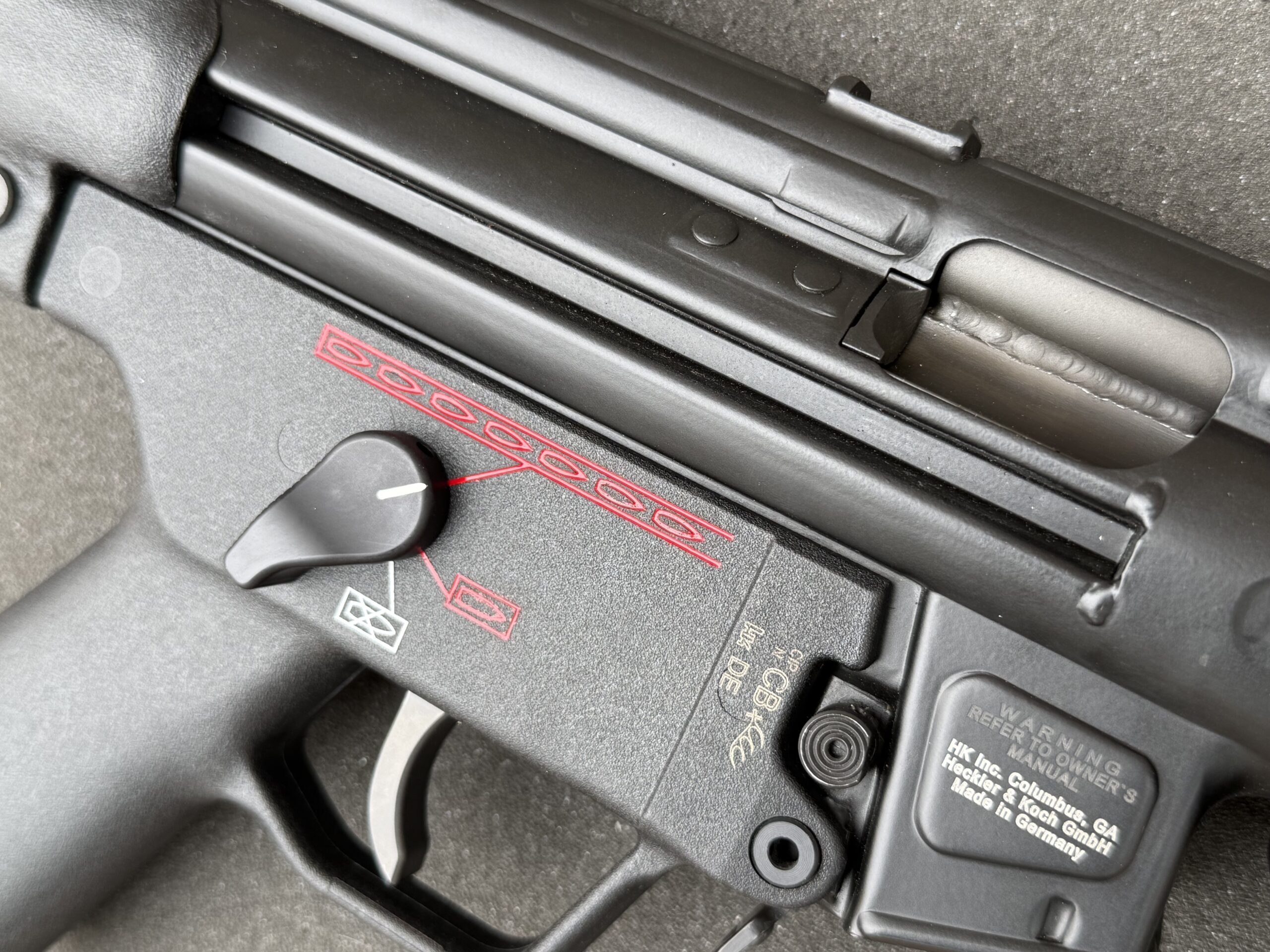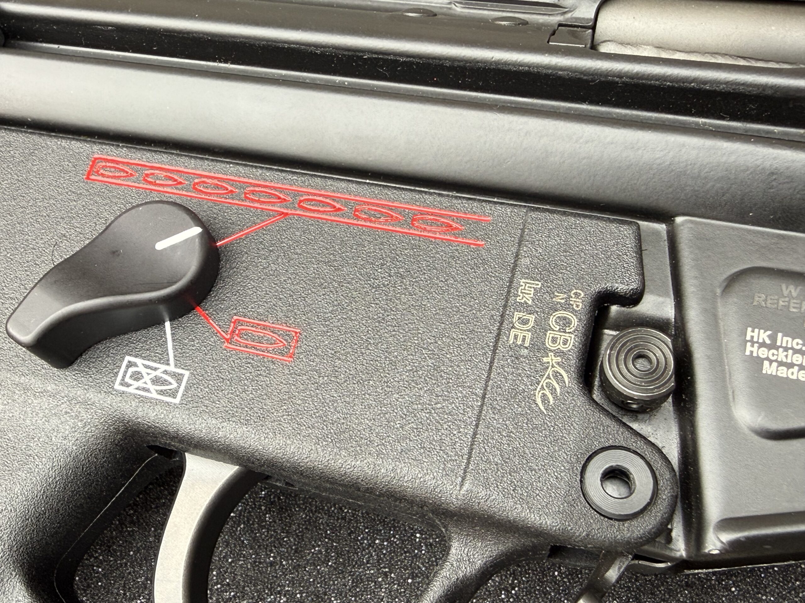 This service is to add the 3rd position, full auto/FRT bullet pictograms to the SP5 grip housing. The SP5 does not have pictogram markings other than “safe/Fire”. *This replicates the factory HK full auto look, in the correct 3rd position for FRT and binary triggers. This service includes laser engraving the bullet pictograms and red color fill on both right/left sides of the housing. If you send in your Rare Breed RD3 Ambi levers with the grip housing, we will white color fill the lever lines as part of the service.